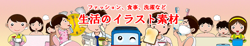 生活のフリーイラスト素材 2022.01.022022.02.11 スポンサーリンク 生活のフリーイラスト素材のメニューページ 目覚めや朝食、歯磨きなどの身支度に始まって、洗濯や掃除、買い物など生活の様々な場面をイラストにしてみました。帽子やファッション小物、バックなど生活に欠かせないアイテムなどもイラストで用意しました。組み合わせてお使いいただくと用途が広がる衣食住に関する生活シーンのフリーイラスト素材です。