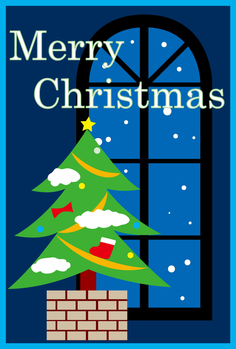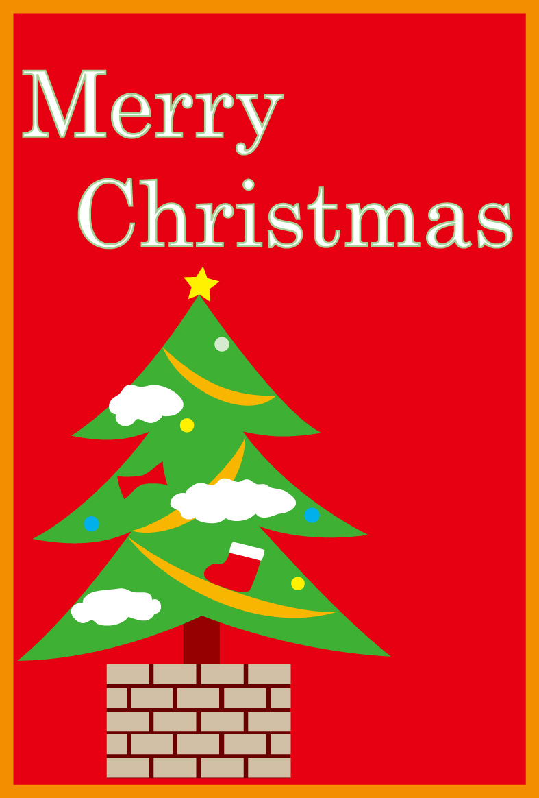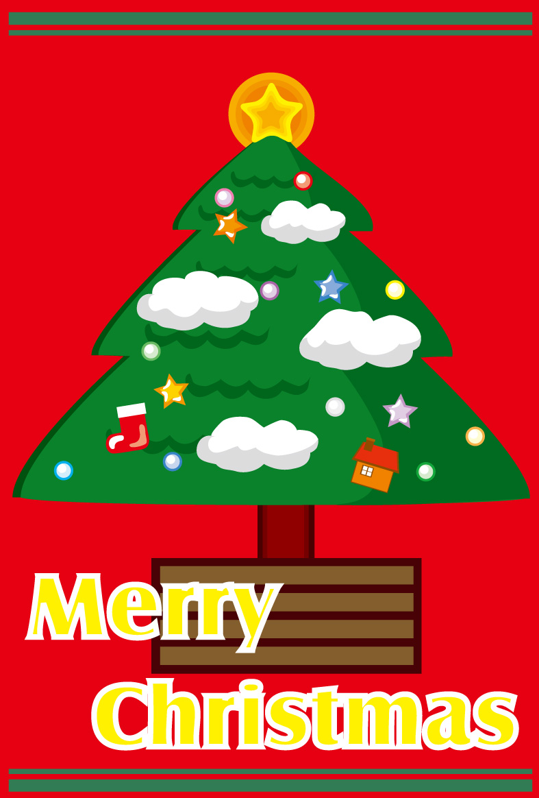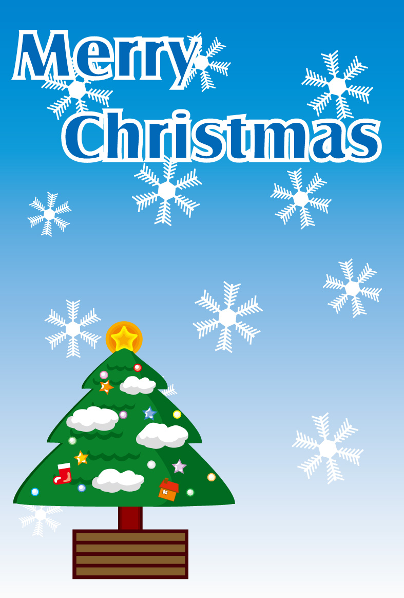 このページは、クリスマスツリーや雪、プレゼントやサンタクロースなどのイラストをあしらった縦書きクリスマスカードを提供しています。