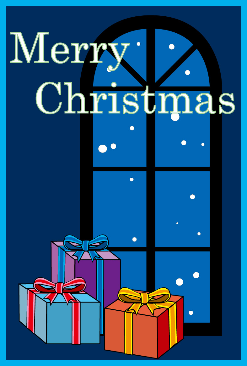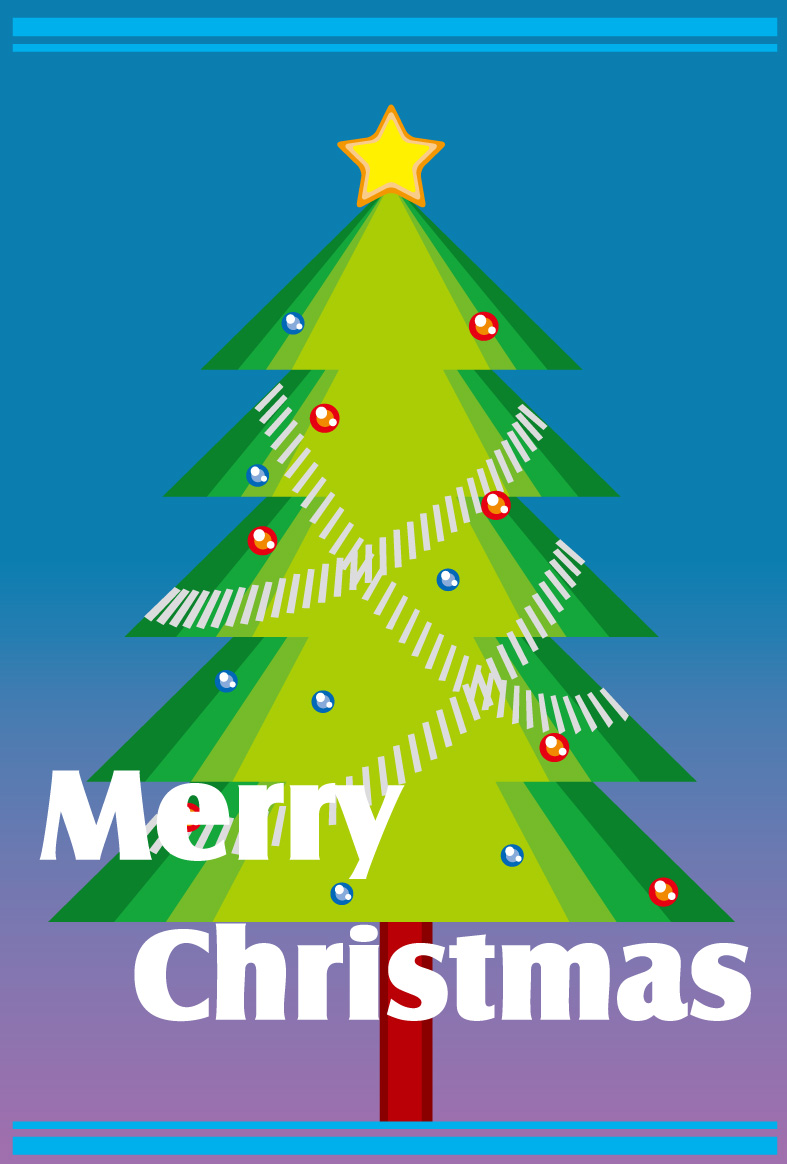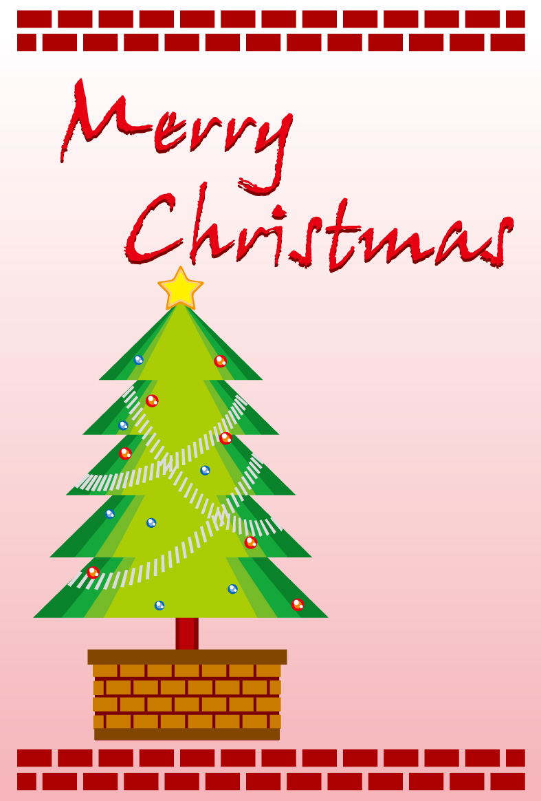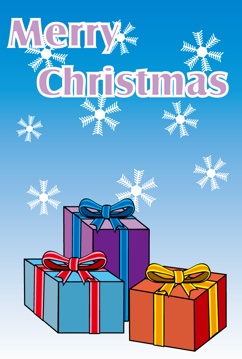 このページは、クリスマスツリーや雪、プレゼントやサンタクロースなどのイラストをあしらった縦書きクリスマスカードを提供しています。
