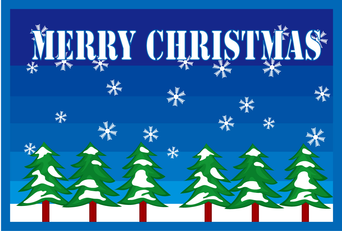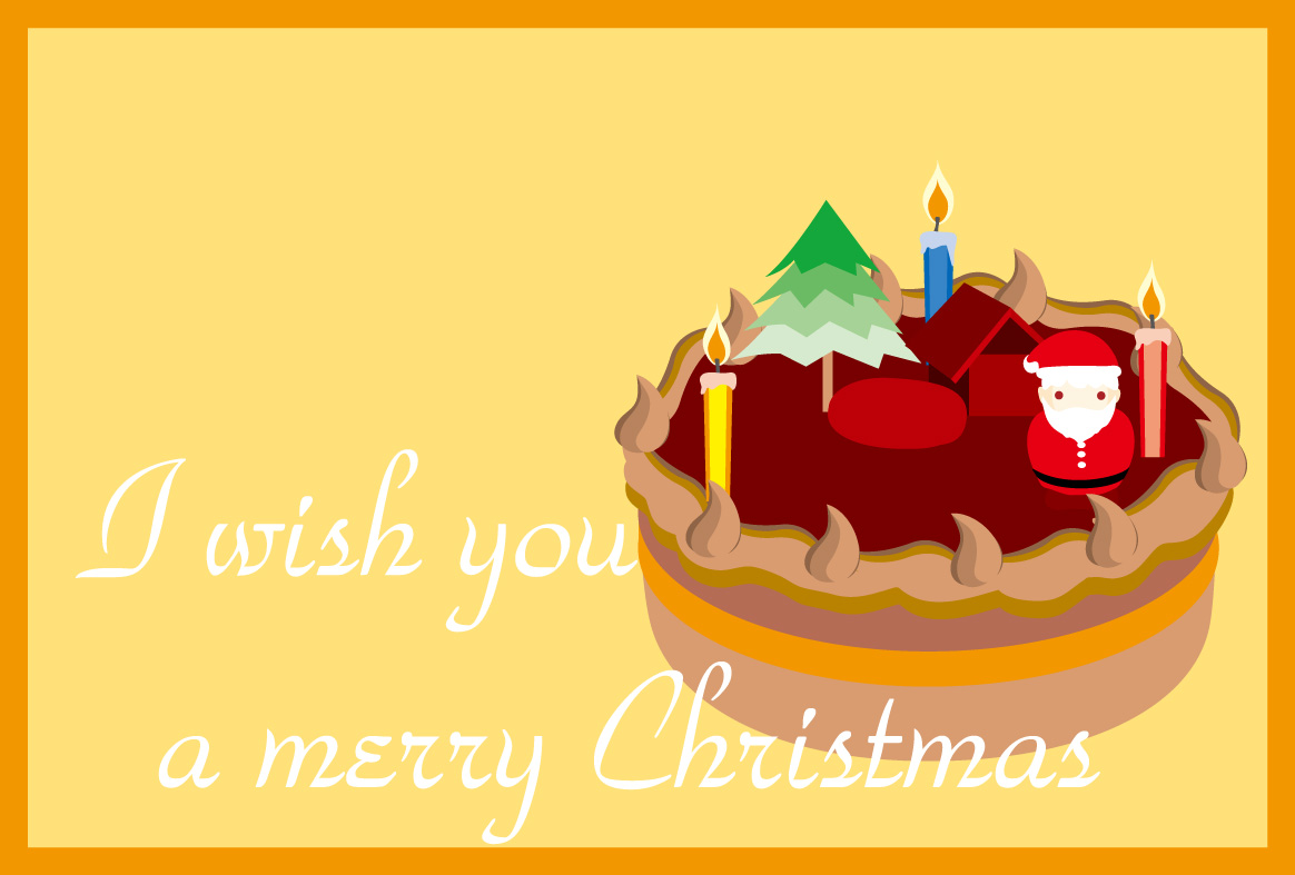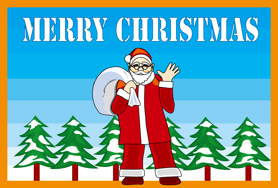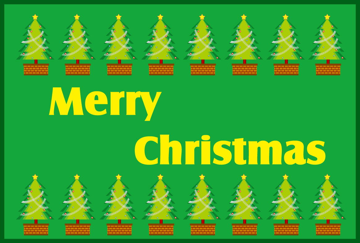 このページは、クリスマスツリーや雪、プレゼントやサンタクロースや燭台などのイラストをあしらった横書きクリスマスカードを提供しています。