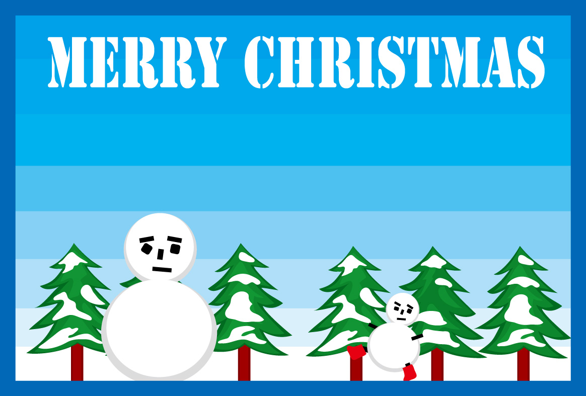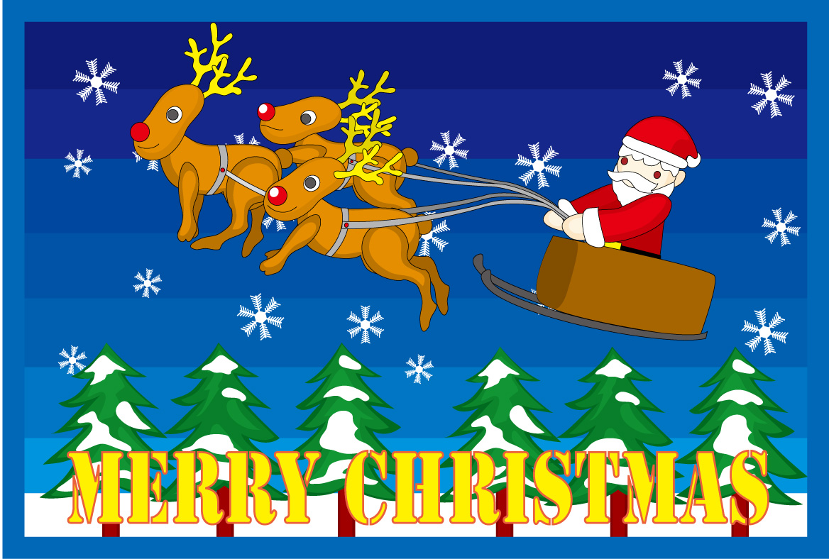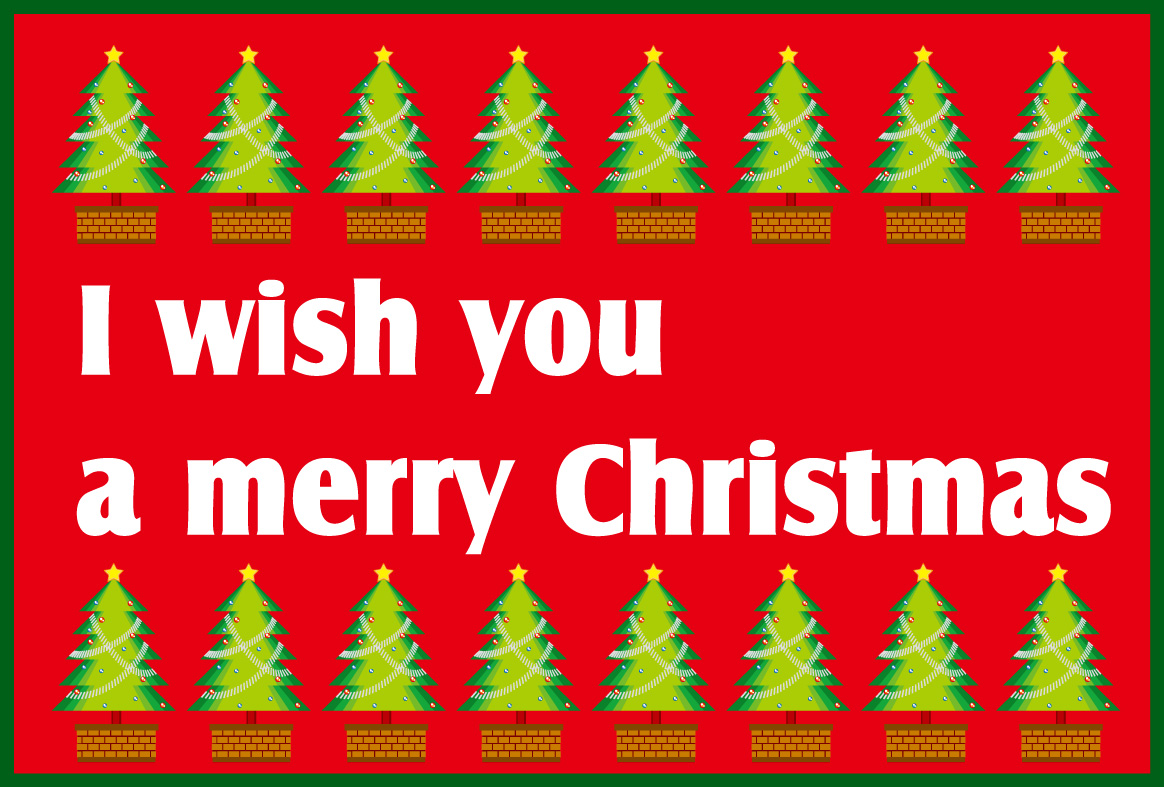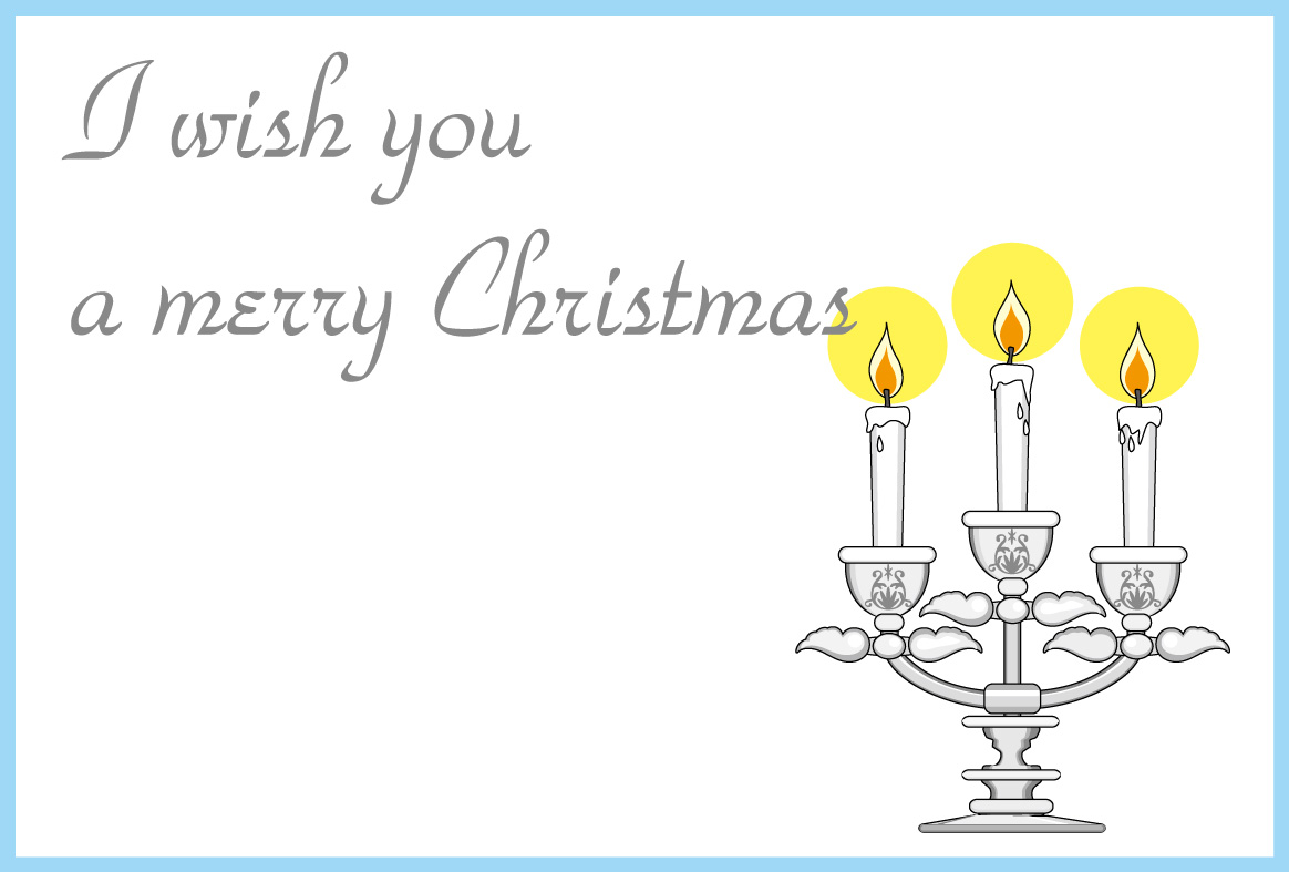 このページは、クリスマスツリーや雪、プレゼントやサンタクロースや燭台などのイラストをあしらった横書きクリスマスカードを提供しています。