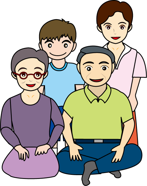夫婦と子供、父と娘、おばあちゃんと息子夫婦など家族にはいろいろなパターンがあります。そんな家族が集合しているイメージを感じられる無料クリップアート素材を用意しました。
