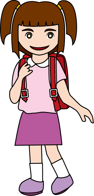 遊びや、登校、学校の様子、家での様子などの女の子の生活シーンの無料クリップアート素材です。