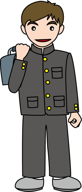 男子中学生、高校生の授業風景や登校、クラブ、家庭での様子などを表現した無料クリップアート素材です。
