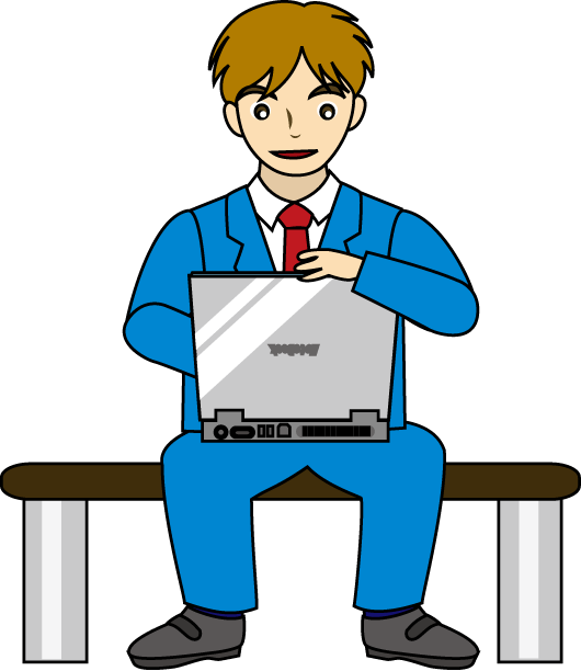 仕事をする、ベンチで休む、家でくつろぐなどの日常の様子を表現した青年(男)の無料クリップアート素材です。