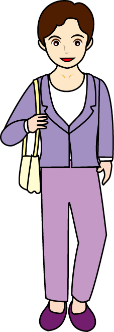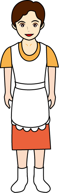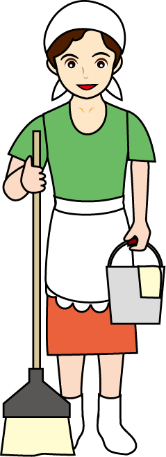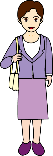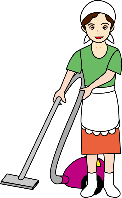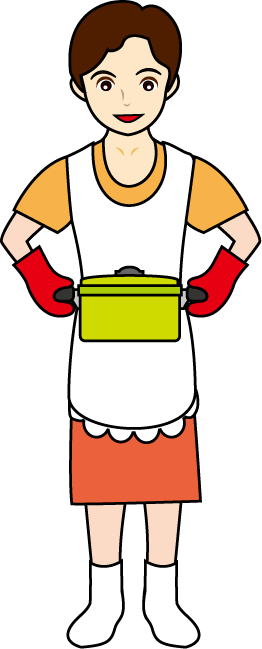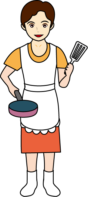 外出するお母さん、エプロン姿の母親、料理をする、掃除をする、育児をするなどお母さんをイメージした無料クリップアート素材です。