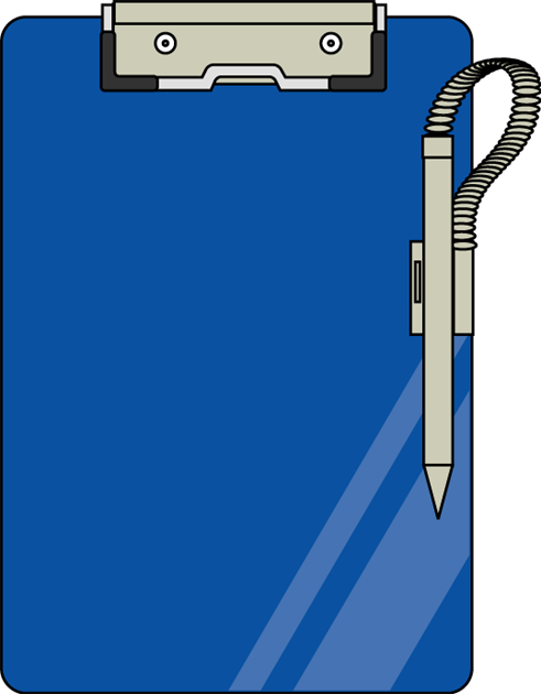 紙を挟むバインダー。クリップボードとも呼ばれますが、クリップボードという名称はコンピュータの記憶システムとしての方が有名かもしれません。このページには、留めるというイメージや回覧のイメージにも使えるバインダーの無料クリップアートを用意しました。