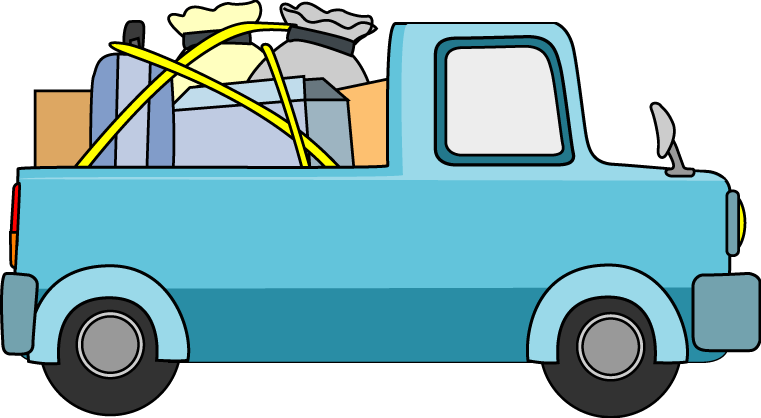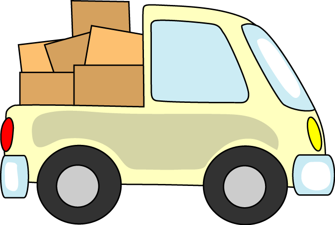 転居通知に適した引っ越しをイメージした荷物と車や引っ越しトラックのイラストです。