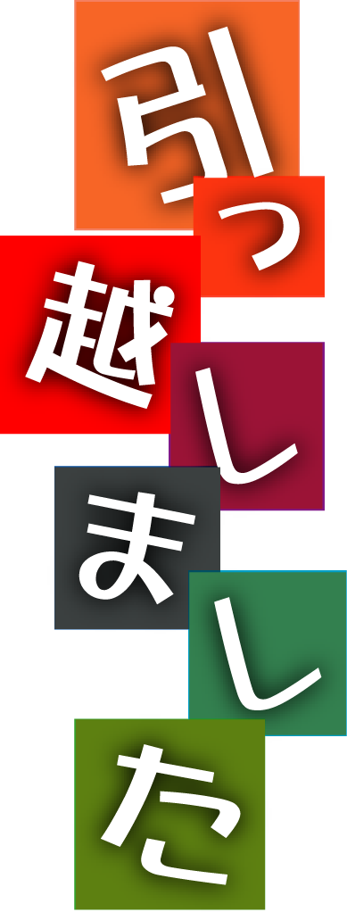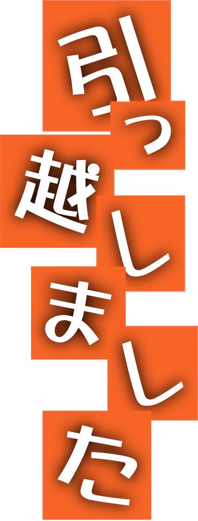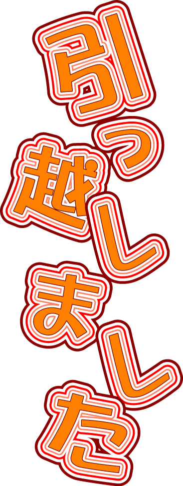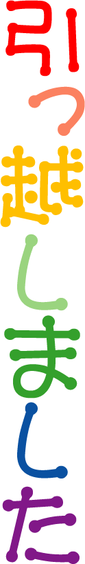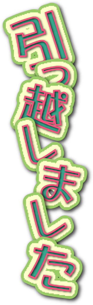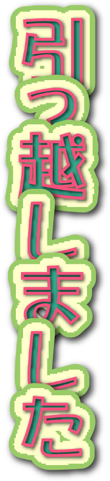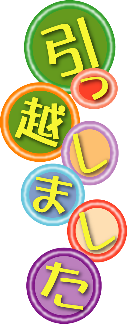 転居通知に適した「引っ越しました(縦書き)」の文字素材です。様々な色や形を用意しましたので、お好みのものを画像などに重ねてお使い下さい。