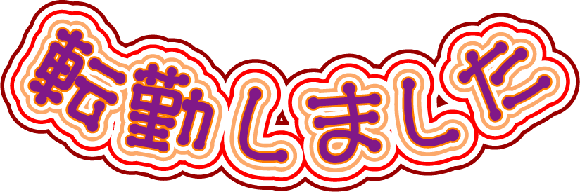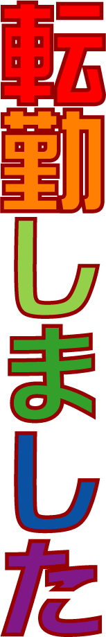 転居通知に適した「転勤しました」の文字素材です。様々な色や形を用意しましたので、お好みのものを画像などに重ねてお使い下さい。