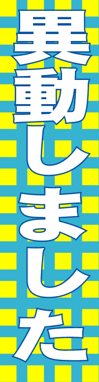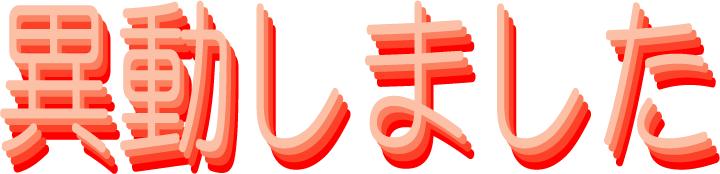 転居通知に適した「異動ました」の文字素材です。様々な色や形を用意しましたので、お好みのものを画像などに重ねてお使い下さい。