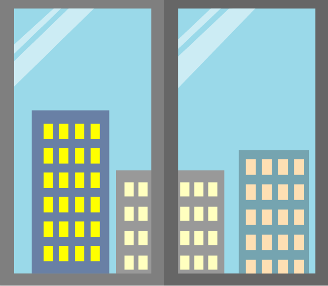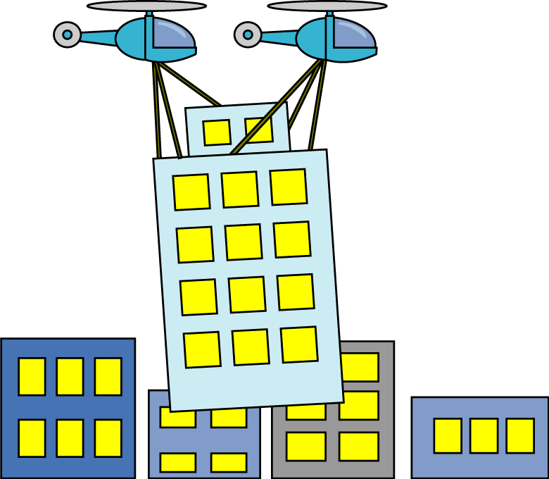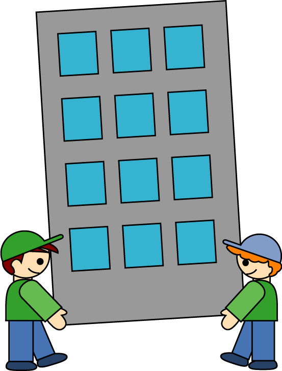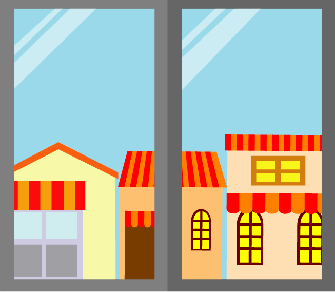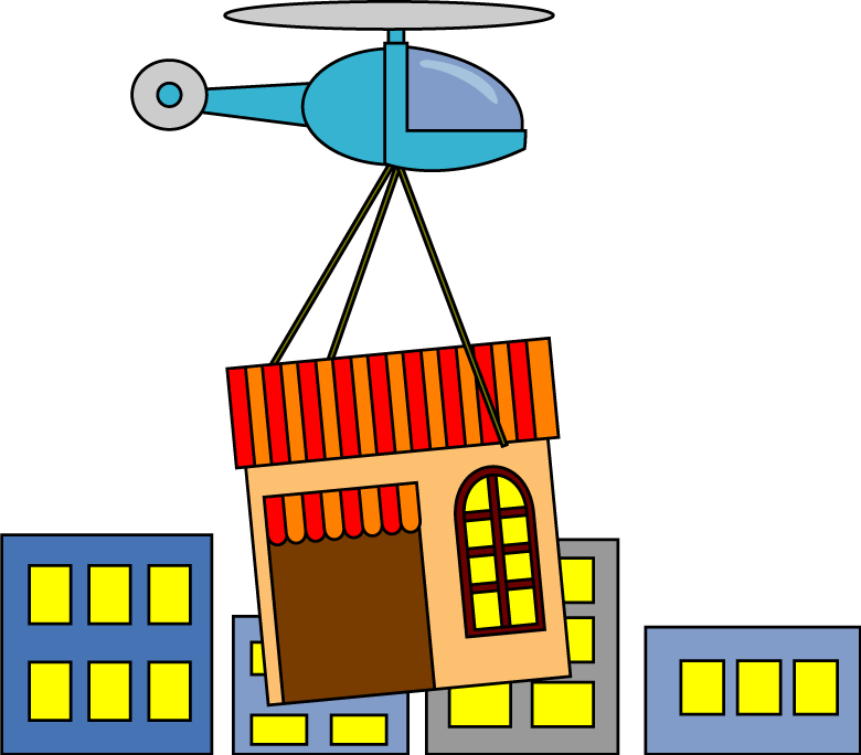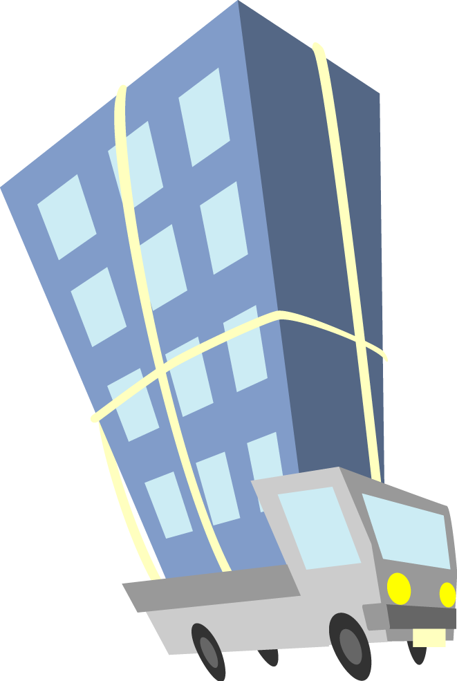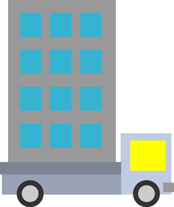 オフィス店舗移転通知に適した引っ越しをイメージしたビルや店舗、オフィスのイラストです。