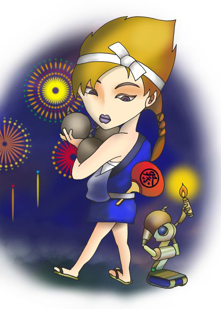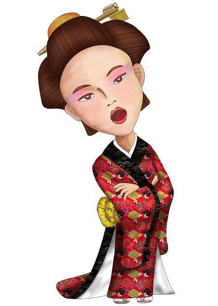 色とデフォルメ、場面にこだわった女性のイラストレーションです。個性的な女性の姿をお楽しみ下さい。挿絵としてだけでなくポスターやポストカードに使っていただいても面白いとおもいます。