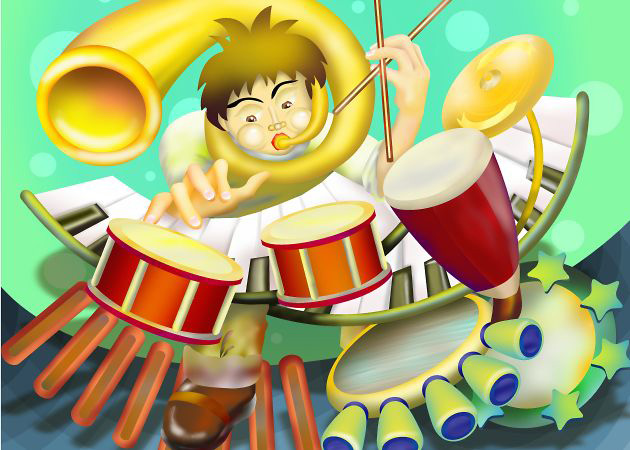 ドラマーやギタリスト、ボーカルなど演奏の場面を、色とデフォルメ、場面にこだわってイラストレーションにしてみました。個性的な音楽のイラストレーションをお楽しみ下さい。