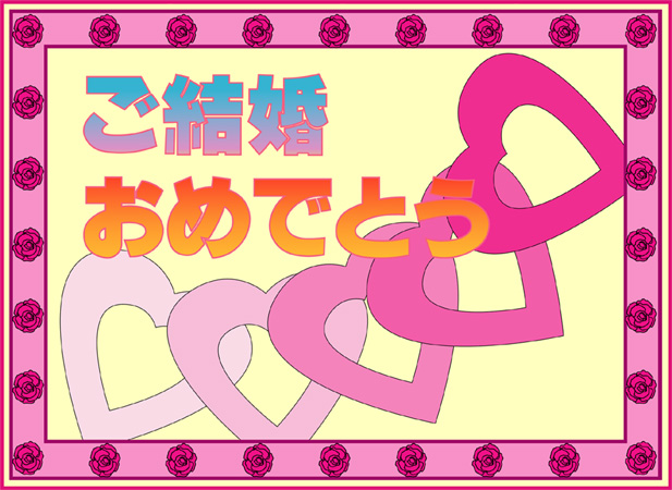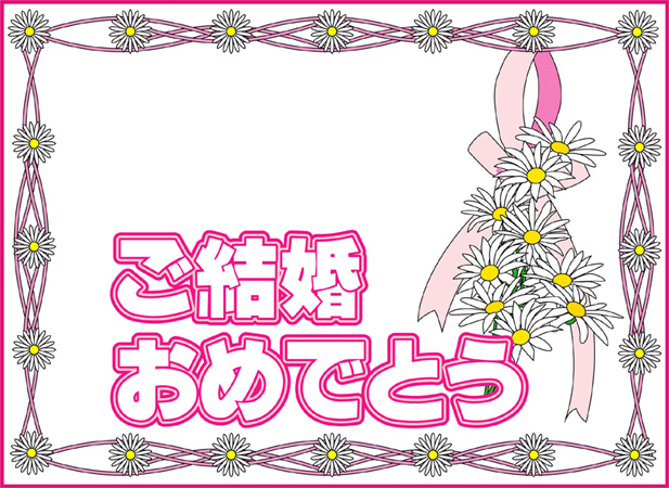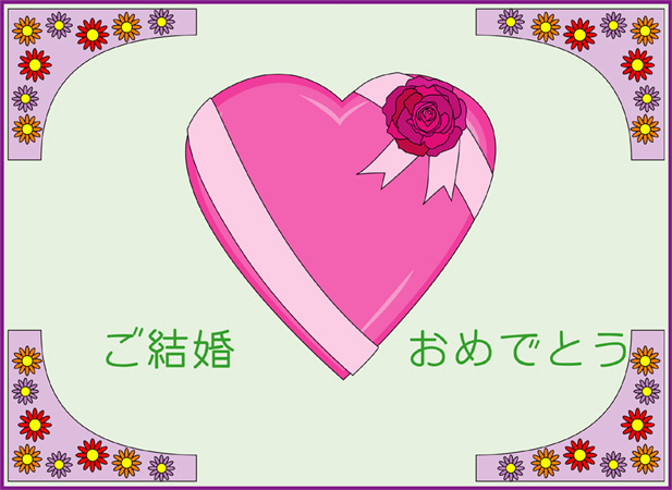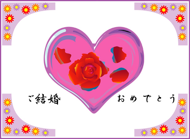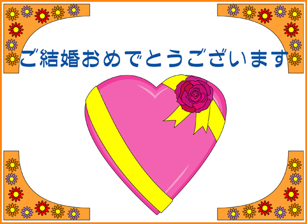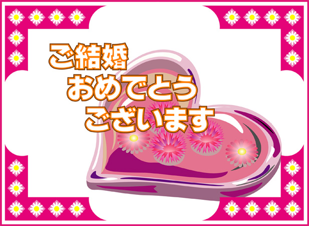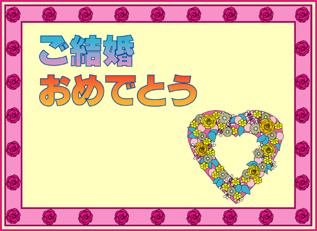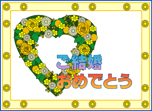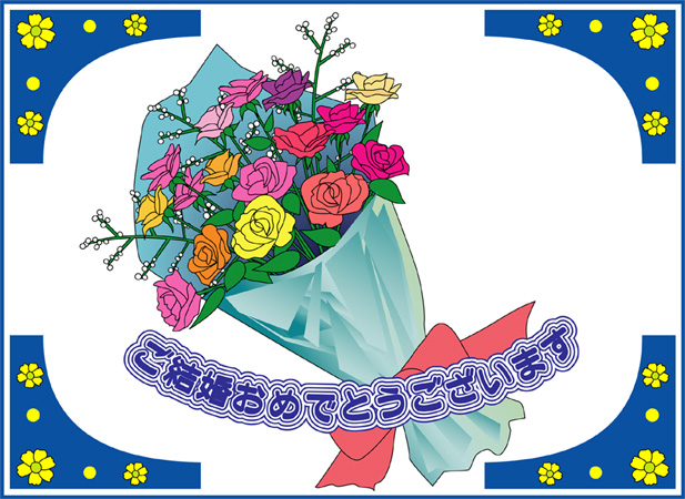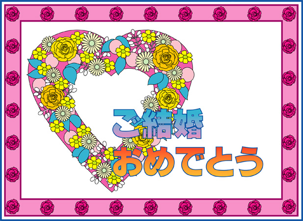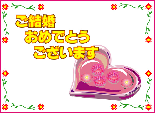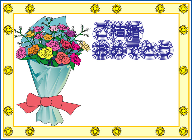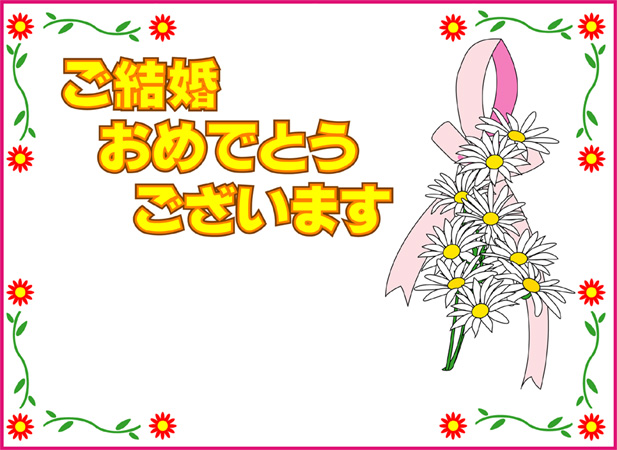 結婚おめでとうの言葉に花の絵をあしらった結婚祝いカードです。このページの素材は旧バージョンです。素材数の豊富な