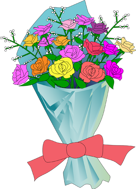 花束やブーケ、リースなど、プレゼントやお祝いごとなどにぴったりな華やかな花のクリップアートです。このページの素材は旧バージョンです。素材数の豊富な