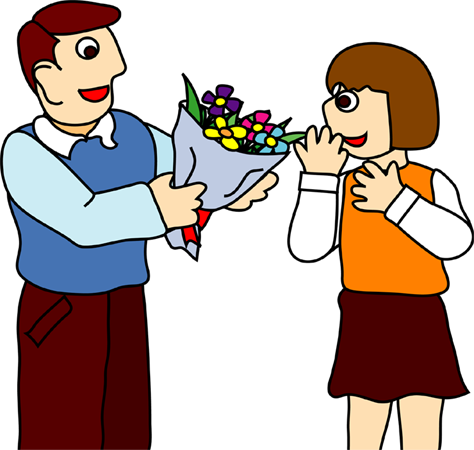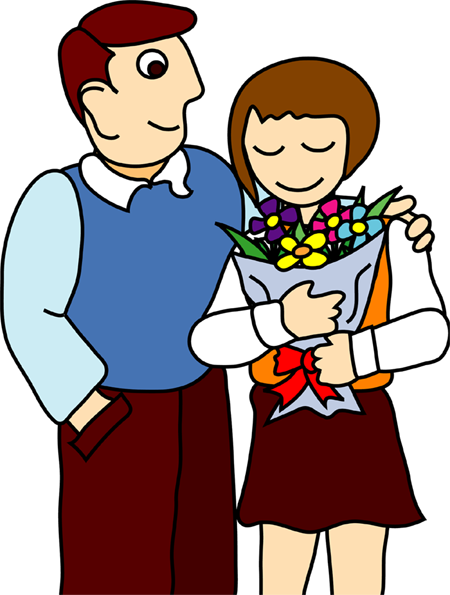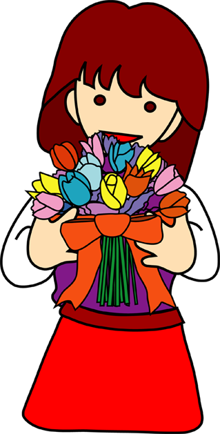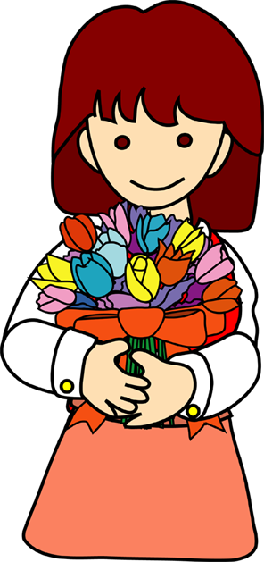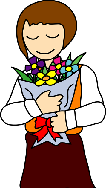 花を持つ人や花を贈る人など、人と花のクリップアートです。このページの素材は旧バージョンです。素材数の豊富な
