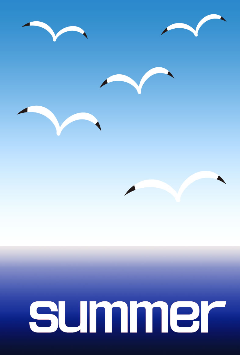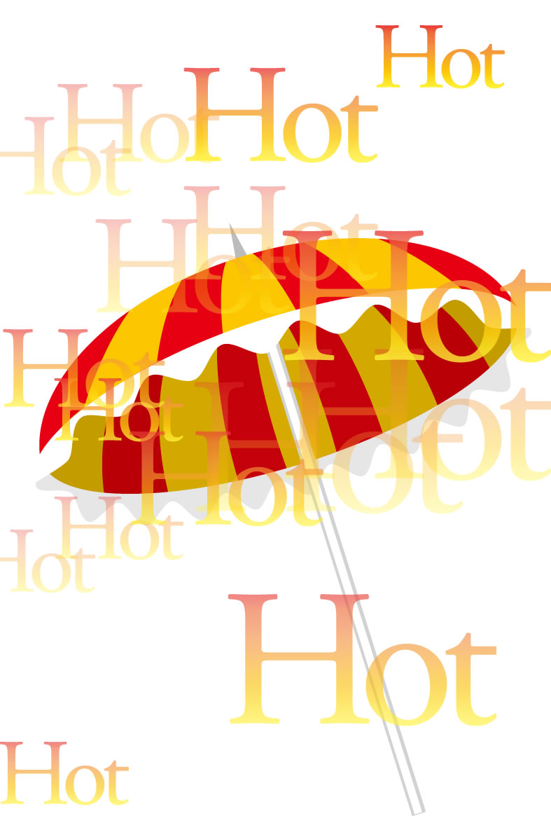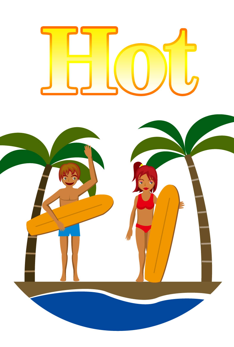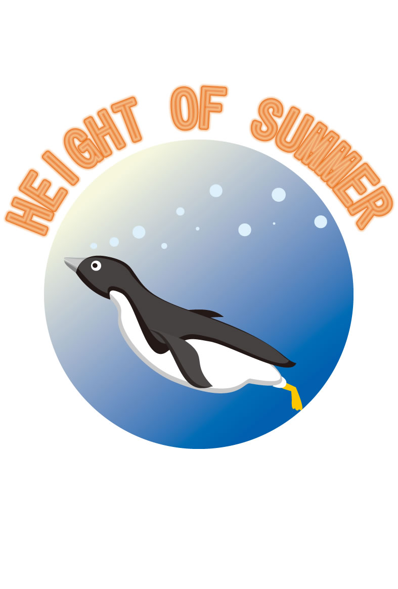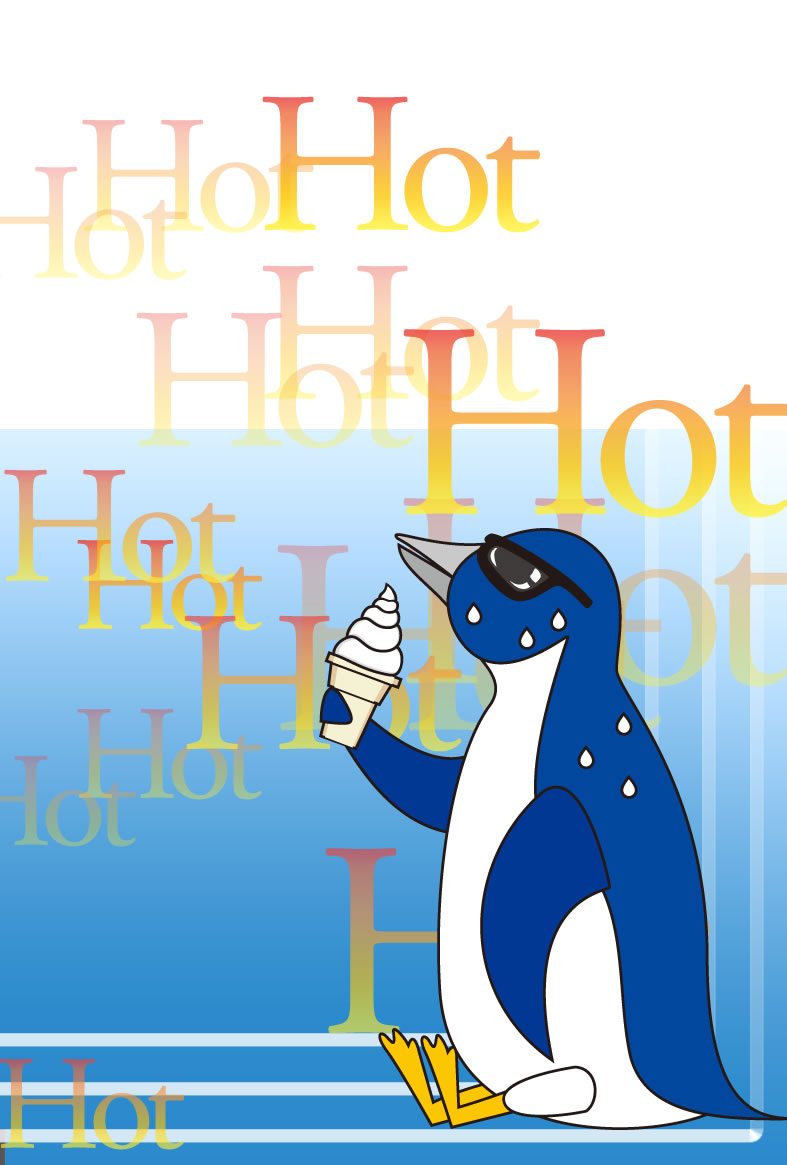 ヤシの木やパラソル、カモメやペンギンなどイラストをあしらった暑中見舞いハガキの縦書きデザインを無料提供しています。あいさつ文などを入れて印刷するだけで暑中見舞いが完成する素材です。