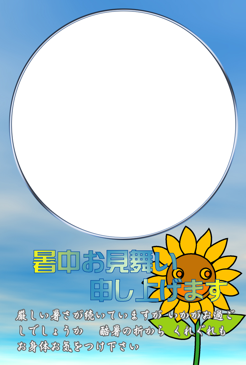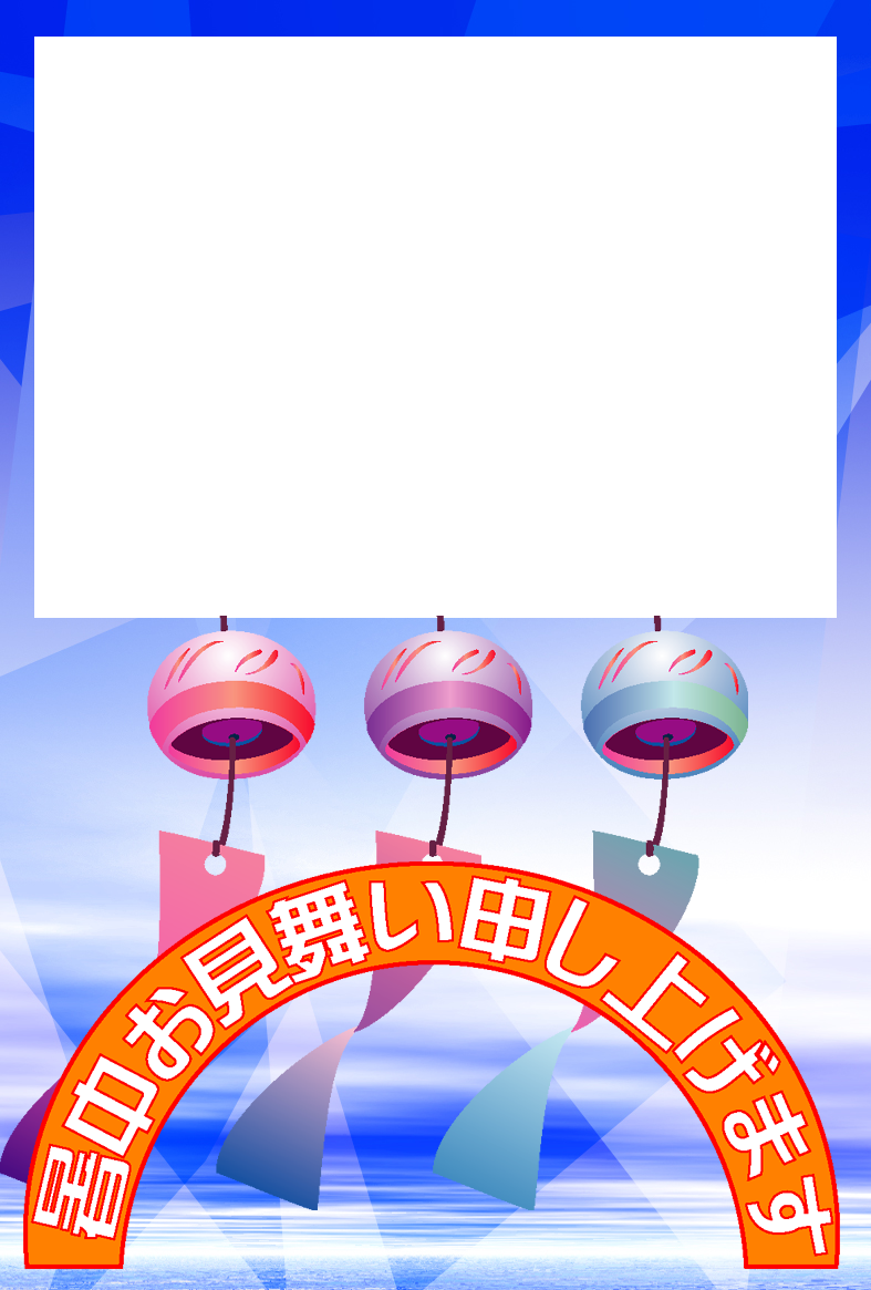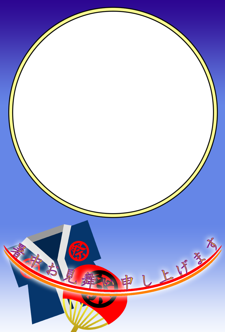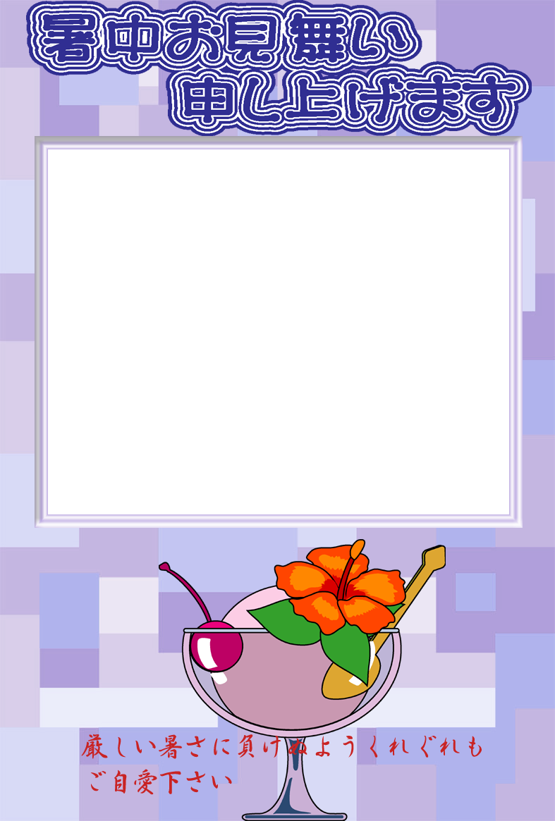無料暑中見舞いハガキ素材-縦書き写真フレームA