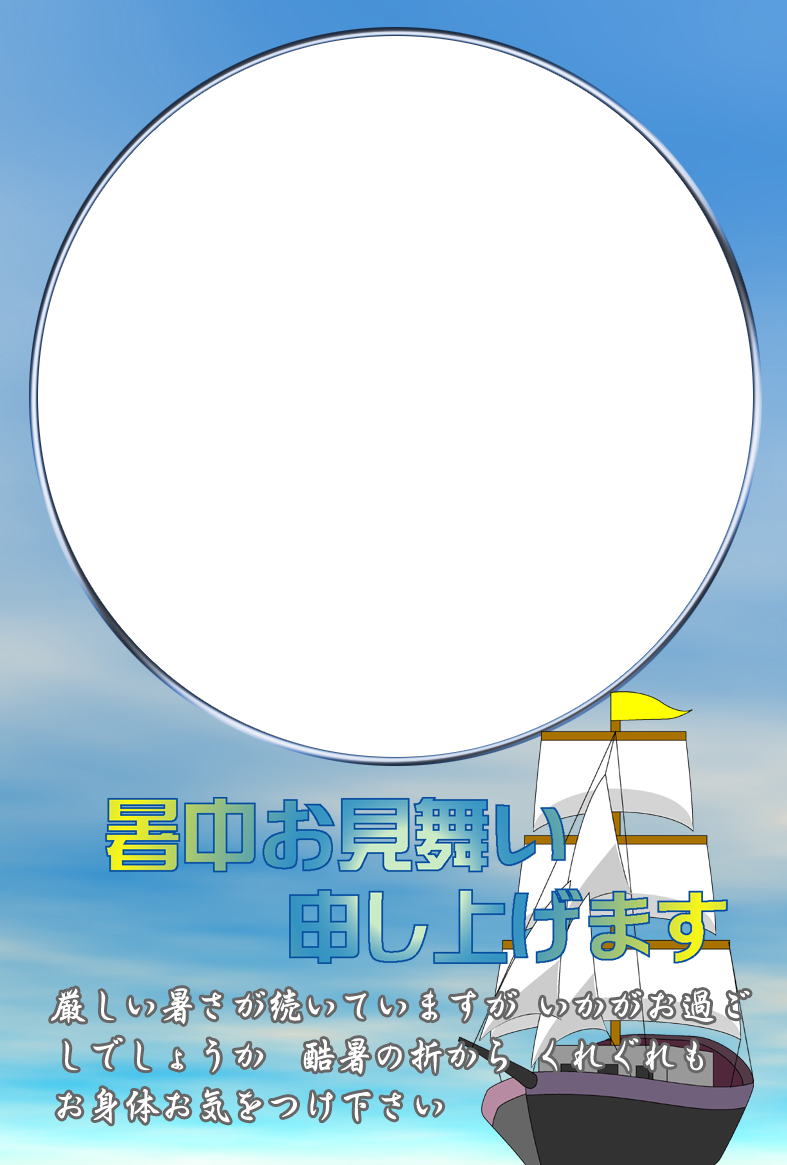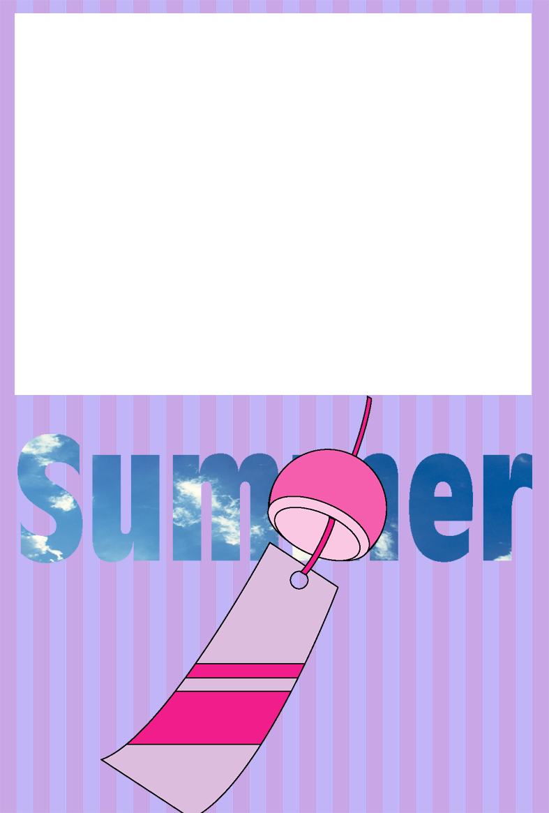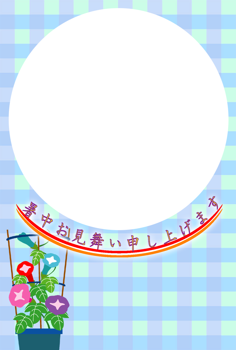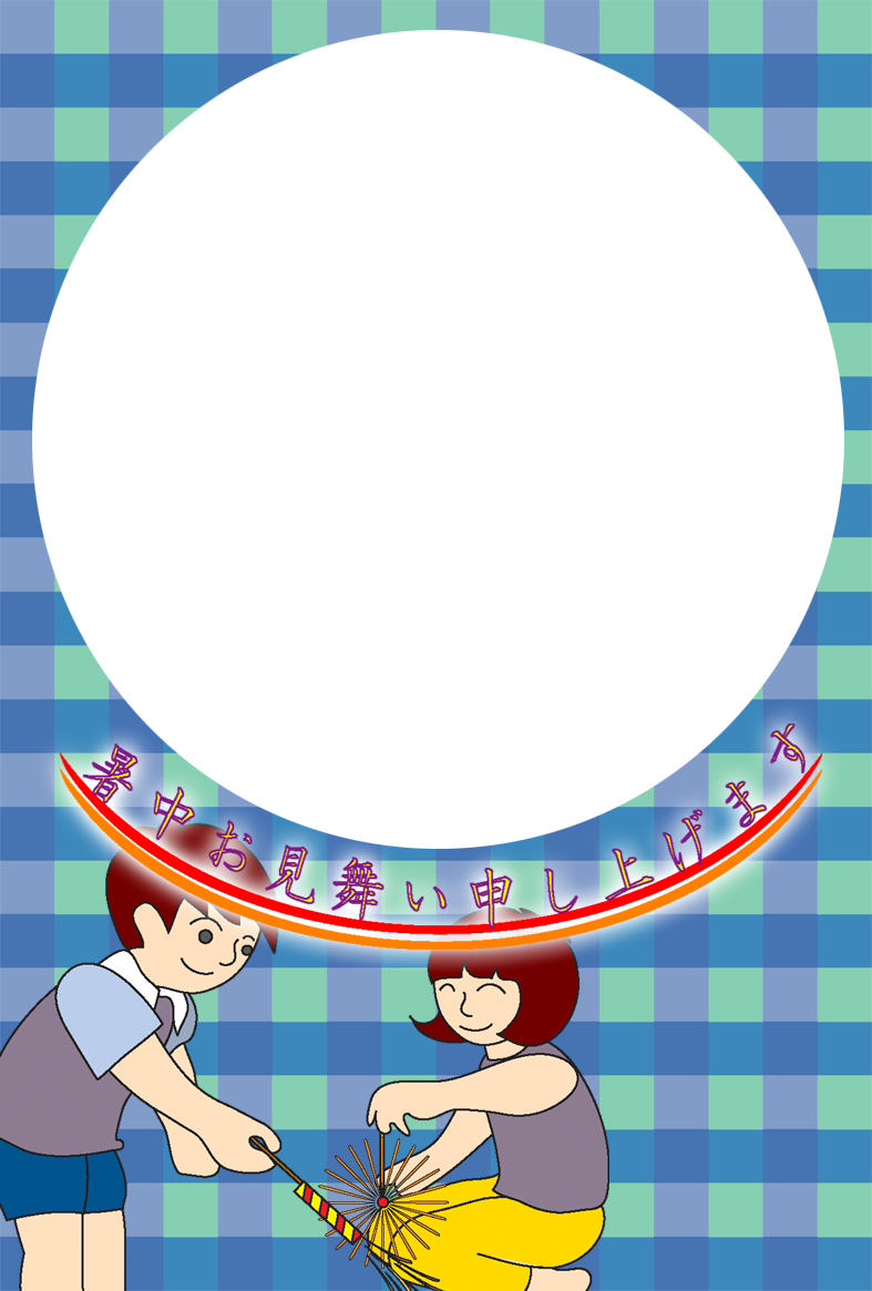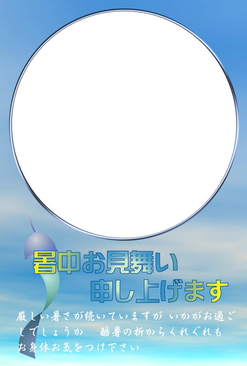 無料暑中見舞いハガキ素材-縦書き写真フレームA