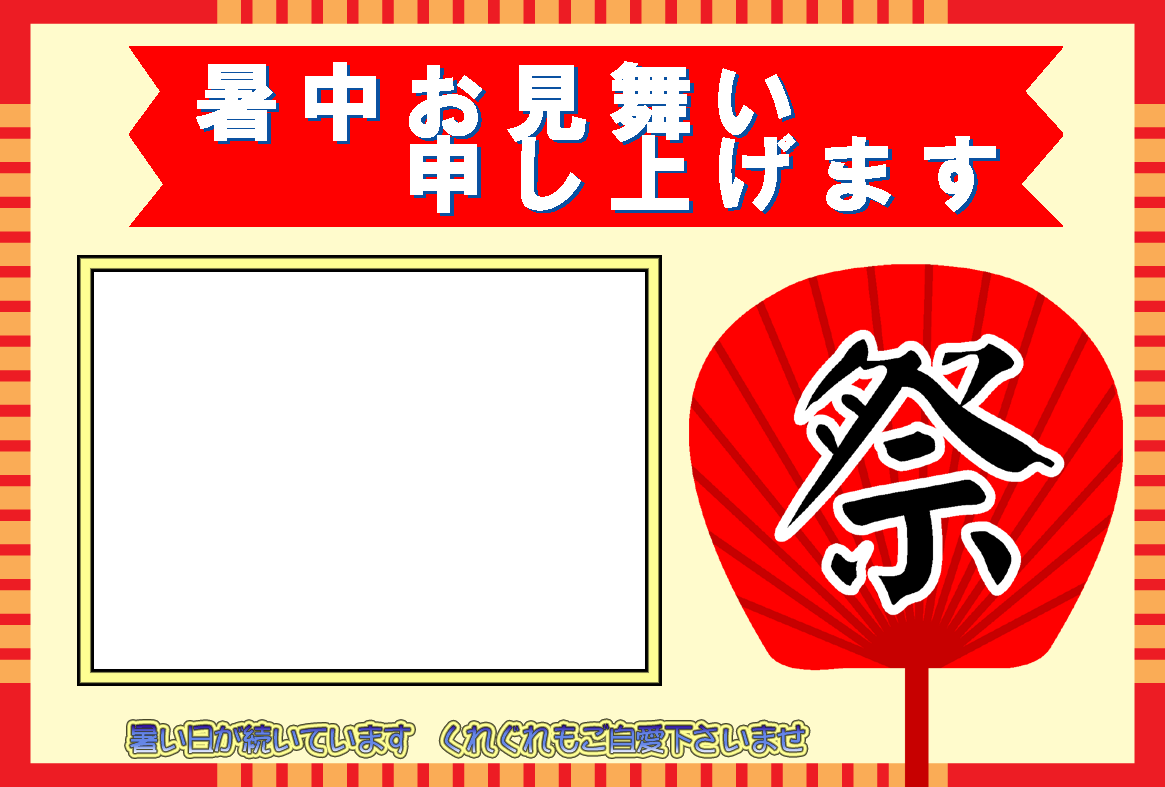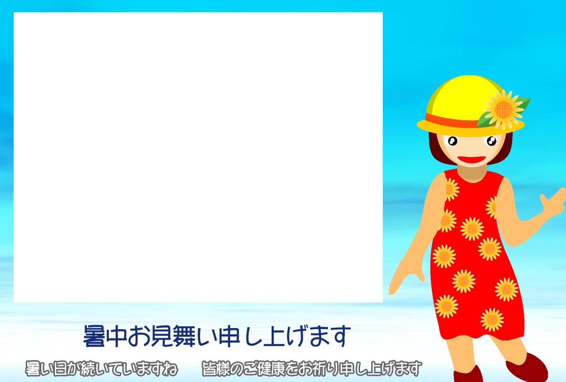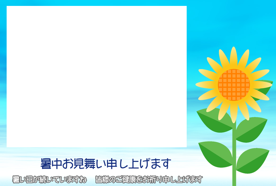 無料暑中見舞いハガキ素材-横書き写真フレームA