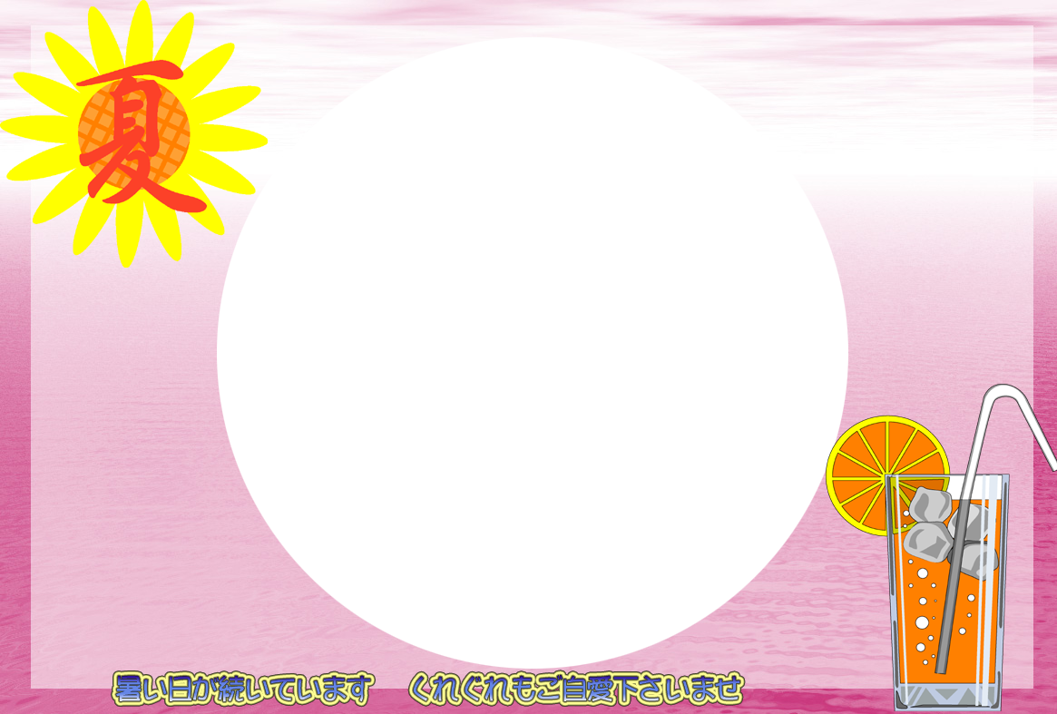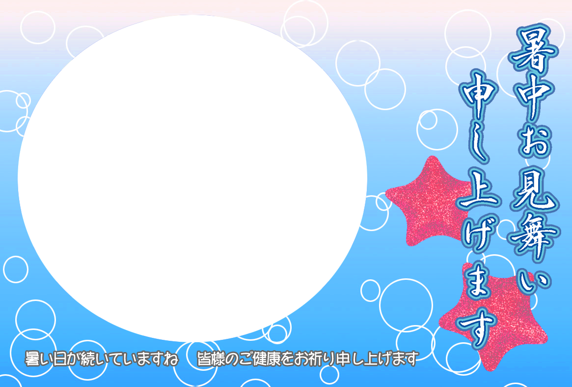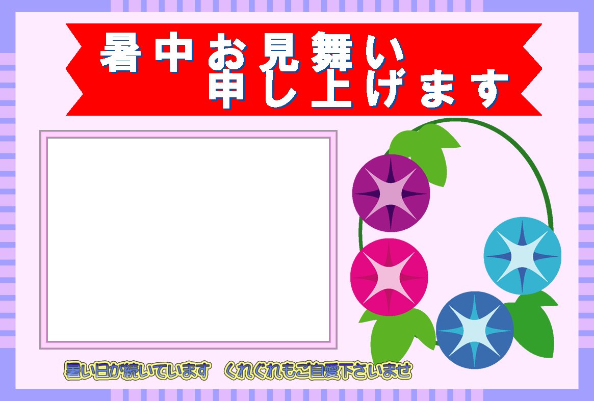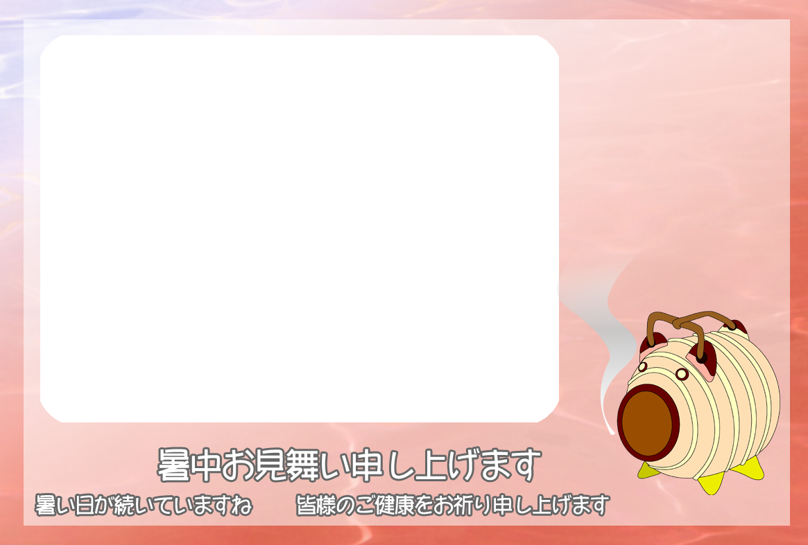 無料暑中見舞いハガキ素材-横書き写真フレームA