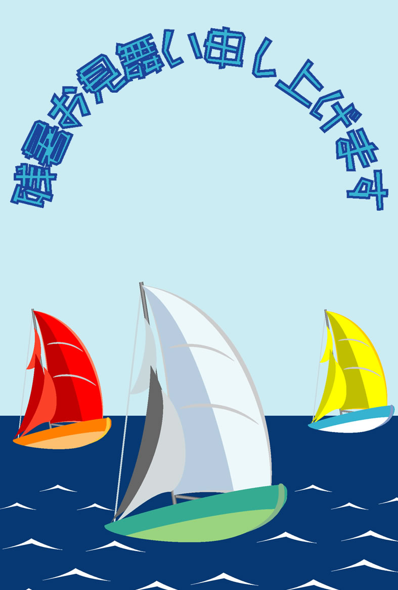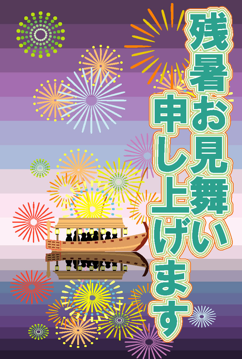 朝顔や花火、屋台船やヨットなどのイラストをあしらった残暑見舞いハガキの縦書きデザインを無料提供しています。印刷するだけで残暑見舞いが完成する素材です。