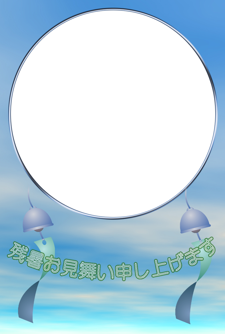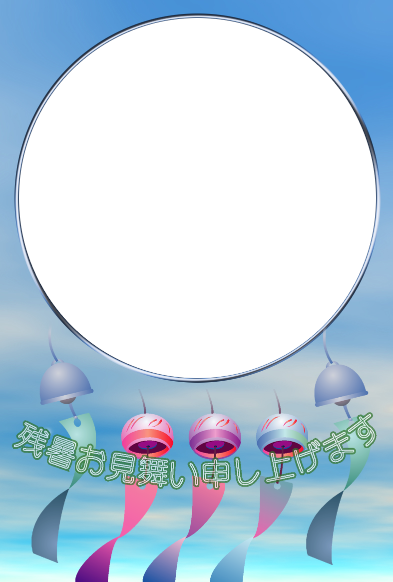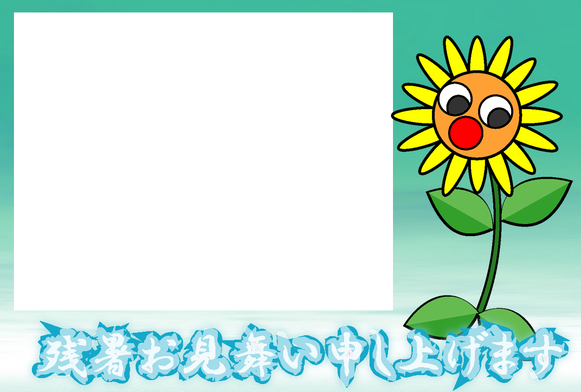 風鈴やひまわり、ヨットや屋台船などのイラストをあしらった残暑見舞いハガキの写真フレームを無料提供しています。写真と組み合わせて印刷するだけで残暑見舞いが完成する素材です。