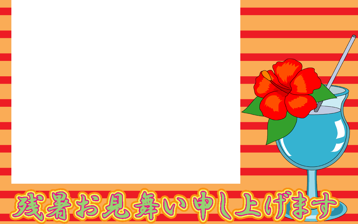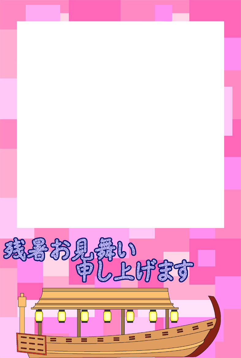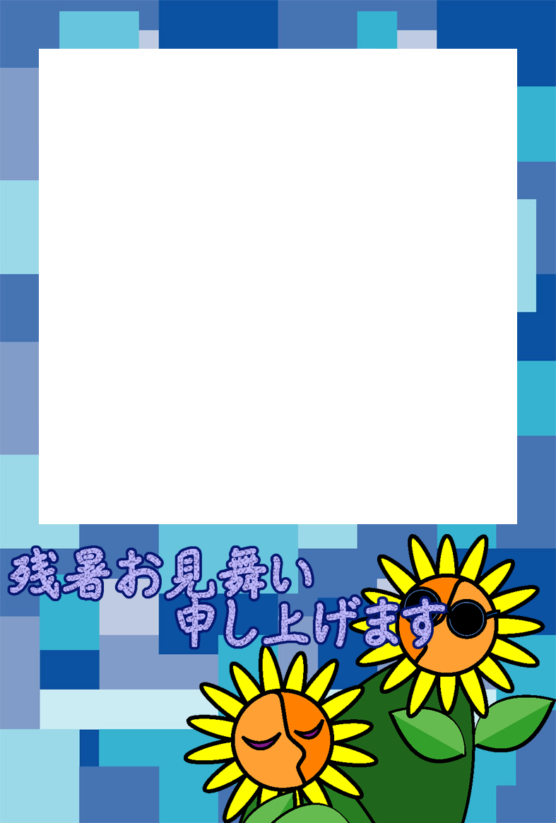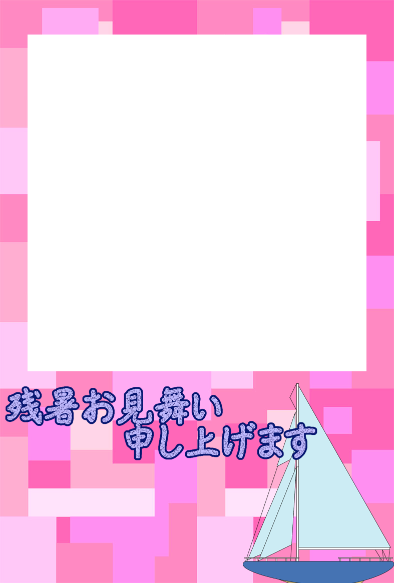風鈴やひまわり、ヨットや屋台船などのイラストをあしらった残暑見舞いハガキの写真フレームを無料提供しています。写真と組み合わせて印刷するだけで残暑見舞いが完成する素材です。