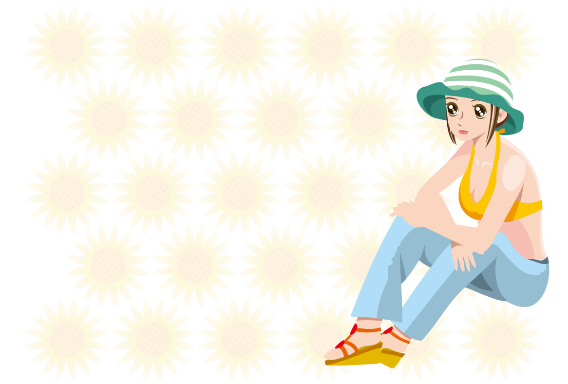 女性や日傘、浴衣やビキニ、海岸やキャンプなど清涼感のあるのイラストをあしらった暑中見舞いハガキの文字なしデザインを無料提供しています。あいさつ文などを入れて暑中見舞いや残暑見舞いとしてお使い下さい。