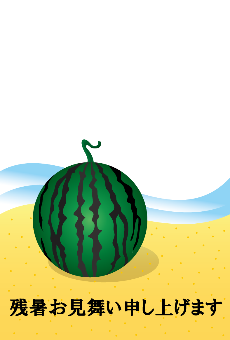 無料残暑見舞いハガキ素材-ビール、スイカ他