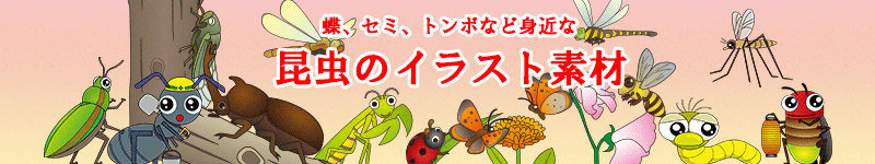 昆虫や虫の無料イラスト 2022.01.012022.01.27 スポンサーリンク 昆虫や虫のイラストメニューページ 子どもたちに人気のカブトムシやクワガタムシをはじめ、受粉を成立させるために農業になくてはならない蜂、絹を生産するための産業に役立つ蚕など人々の暮らしに昆虫は深くかかわっています。そこで、ここでは、身近な昆虫や虫の姿をイラストにして、無料素材として提供しています。